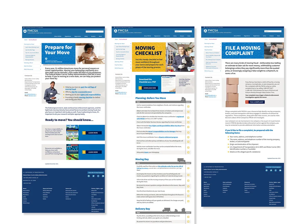 Aptive restructured the Protect Your Move website to improve clarity, usability and trust. The site’s new design placed vital information up front and used graphics to reinforce key messages. The team ensured users could easily find downloadable materials, contact support services and understand their rights as consumers.